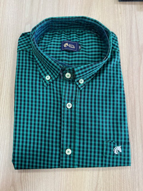 Camisa manga curta STL , xadrez verde e preto, 100% algodão, com bordado no peito e modelagem americana.