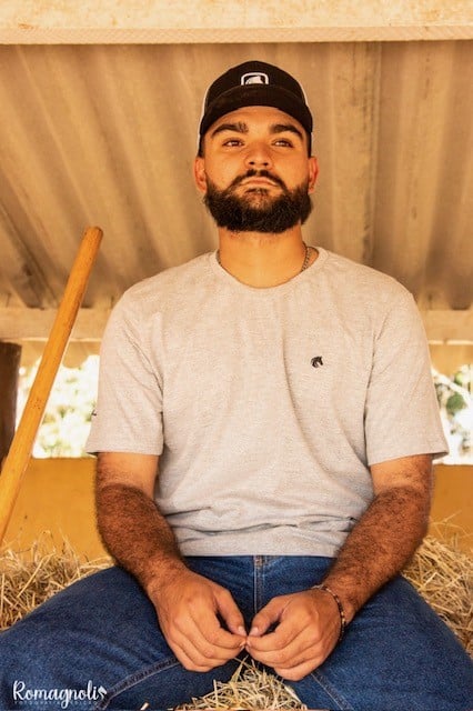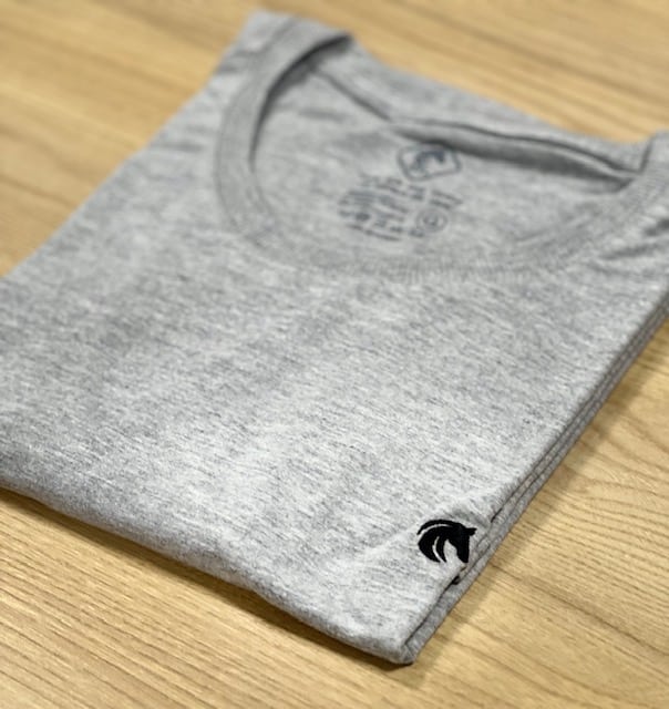Camiseta básica mescla cinza algodão + poliéster, gola com ribana canelada e bordado no peito e manga.